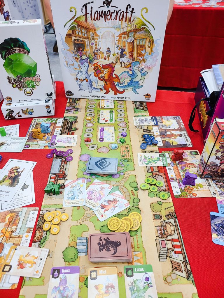 Comme dirait Sylvain de l’école du jeu, Flamecraft est le jeu qui fait « Awww C’est cute (dit très aigu) »… 😉 On retrouve ici un jeu de gestion de ressources avec une dynamique très intéressante, car au fil de la partie tous les joueurs participent au développement des différentes boutiques et c’est en utilisant ces mêmes boutiques de façon stratégique qu’on pourra gagner le maximum de points de réputation. C’est un jeu qui rappelle Everdell pour son niveau de stratégie et sa présentation aussi soignée tout en proposant des mécaniques complètement différentes.