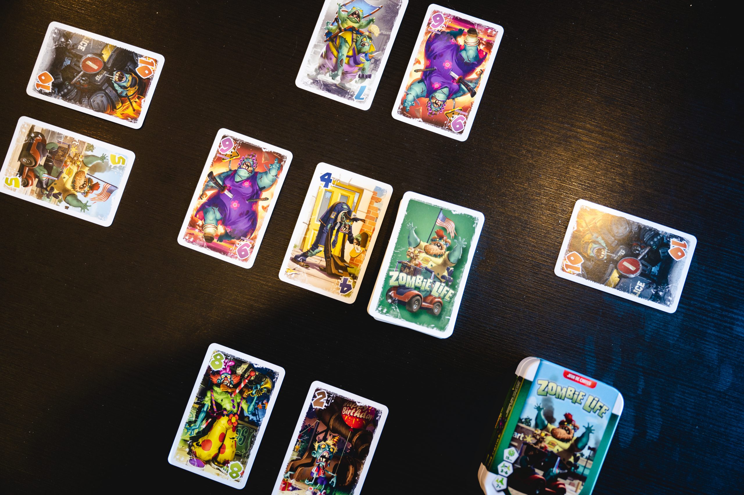 7 ans+, 3 à 6 joueurs, 15 minutes Accumulez le plus de zombies différents pour gagner des points sans déclencher d’émeute. Les zombies sont parmi nous, et il va falloir faire avec. Accueillez-les chez vous ou chassez-les dans la horde. Attention, si vous faites une paire de zombies chez vous ou dans la horde, c’est l’émeute ! et vous perdez la manche. Grâce à la distribution des valeurs de cartes, prenez des risques intelligemment. Attirez les zombies ou chassez-les dehors si vous risquez d’avoir des paires. Quand tout le monde a passé son tour ou a déclenché une émeute, c’est l’heure des comptes!