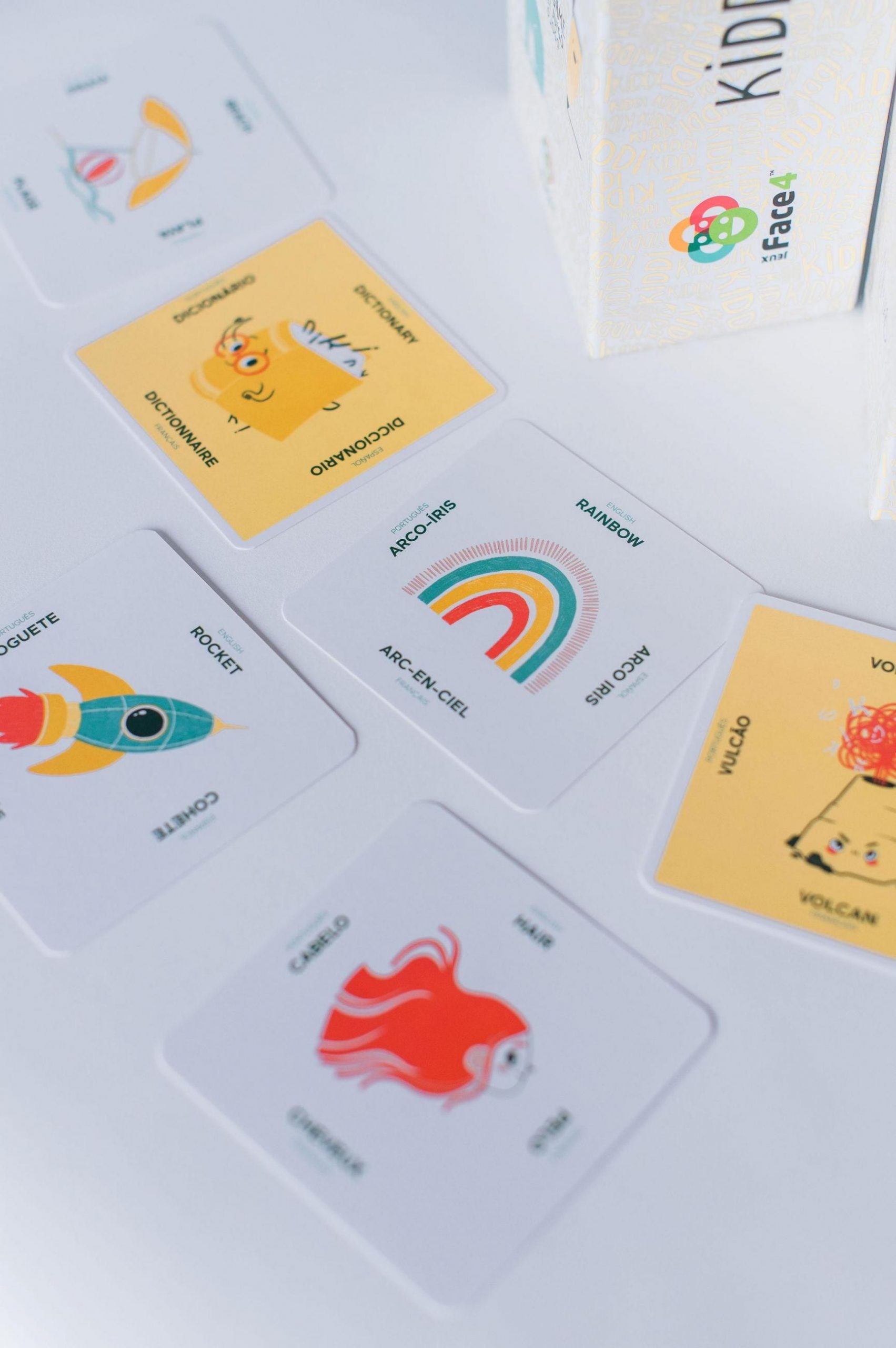 5 ans+, 2 à 6 joueurs, 20 minutes Une série de cataclysmes a créé un fouillis aux Pays des Mots. Des aventuriers s’engagent à remettre de l’ordre malgré les nouvelles catastrophes qu’ils pourraient rencontrer. Leur outil: la formule magique ‘Kiddi’! Afin de remplir sa mission, l’aventurier doit réussir à ordonner toutes ses cartes. Le premier aventurier qui n’a plus de carte en main aura remis l’ordre au pays des mots.
