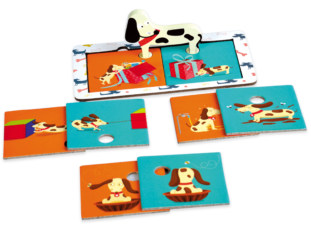 3 ans +, 1 joueur Le chien adorable et intelligent connaît sa gauche du droit et le droit du mal. Rapide à repérer l’heureux du triste, il connaît toujours ses contraires.