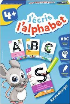 4 ans+ , 1 joueur+ Une activité ludique pour se préparer à l’écriture Tracer les lettres point par point grâce aux 26 cartes pochoirs qui permettent à l’enfant d’apprendre l’alphabet. Avec ces 26 cartes pochoirs, l’enfant trace les lettres point par point, mémorise leur forme avec les lettres déguisées et reconnaît les sons grâce aux comptines amusantes. Les jolies illustrations colorées qui accompagnent chaque lettre et la frise autocorrective des cartes pochoirs permettent à l’enfant de vérifier lui-même ses réponses. Ces activités ludiques favorisent la compréhension de la formation des lettres, la mémorisation de l’alphabet et initient au premier geste de l’écriture.