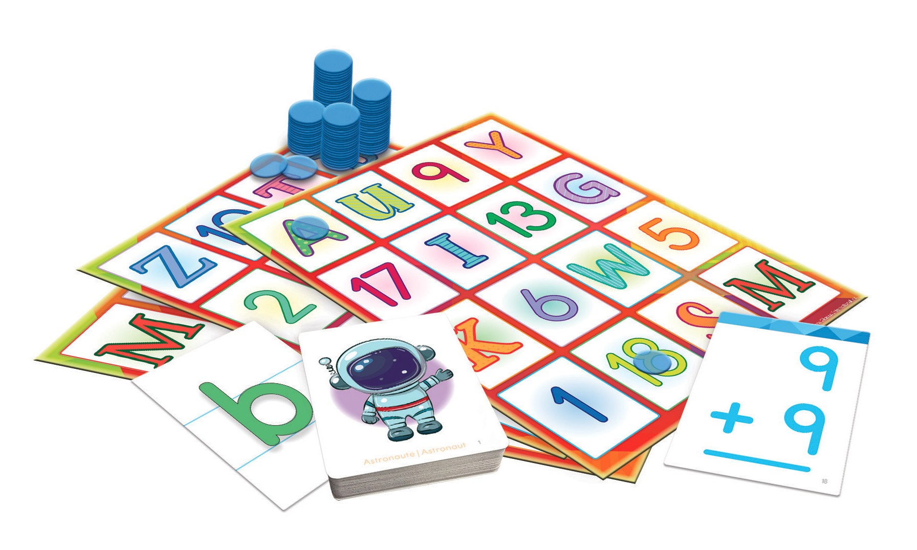 6 ans, 2 à 12 joueurs, 15 à 30 minutes Apprenez et jouez avec les chiffres et les lettres dans cette version du populaire jeu O•K•O! Les chiffres (1 à 20), les lettres de l’alphabet et les premières additions et soustractions ne seront plus un secret pour vos tout-petits! Avec O•K•O Chiffres et lettres, l’apprentissage devient un jeu des plus amusants! Distribuez une planche de jeu à chaque joueur, présentez les cartes et déposez les jetons sur votre planche si vous pouvez faire la bonne association. Soyez le premier à aligner 4 jetons sur votre planche de jeu pour gagner la partie!