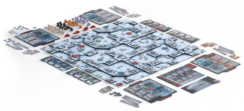 La carte du jeu est complètement modulaire et en trois dimensions, de sorte que chaque jeu de D.E.I. est toujours différent et convaincant.