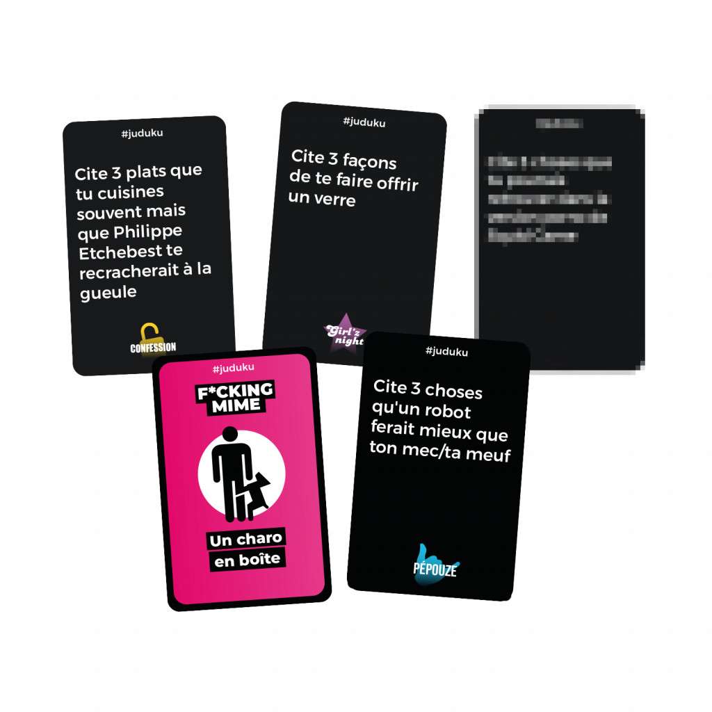 480 cartes délirantes pour animer vos soirées et révéler les pires secrets de vos amies. La joueuse au QI le plus faible est désignée «Queen du Juduku». Elle pioche la première carte et pose la question à une joueuse qui a 8 secondes pour y répondre. Si les réponses sont acceptées par la Queen du Juduku alors la joueuse qui a répondu marque 1 point.