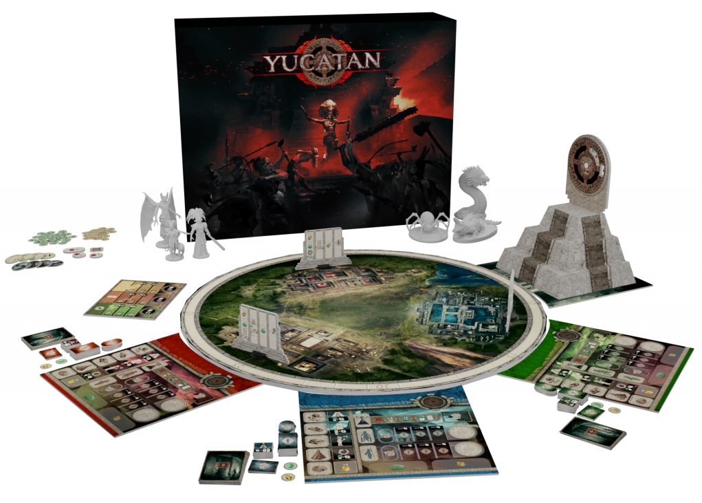 Yucatan est un jeu d’affrontement, avec des figurines, fluide et riche , de l’auteur Guillaume Montiage (Kemet, Suspect, Rapa Nui), illustré par Karl Fitzgerald . Un eurotrash comme aime le dire l’auteur : un mélange d’eurogame (jeu de plateau à l’européenne) et d’améritrash (jeu de