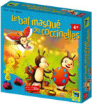 Le bal masqué des coccinelles est un coup de cœur personnel. C’est un jeu coopératif très simple où nous devons costumer nos coccinelles de toutes les couleurs disponibles! Pour ce faire, à notre tour, nous soufflons sur une roulette qui détermine la coccinelle à prendre. Il faut ensuite tenter de donner un bisou à une autre coccinelle. Si le baiser est réciproque (les coccinelles se collent ensemble), on peut échanger les couleurs des deux coccinelles. Si elles ne sont pas compatibles (elles se repoussent) nous ne pouvons pas faire d’échange. C’est vraiment mignon!