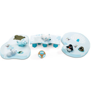 Little Cooperation est l’un de mes jeux favoris pour les jeunes enfants (à partir de 2.5 ans). C’est un jeu coopératif avec une belle présentation. Les animaux sont amusants à manipuler par les enfants et le jeu est très simple. On lance un dé pour dicter notre action qui varie entre déplacer un animal vers la banquise ou enlever un pilier qui soutient le pont.