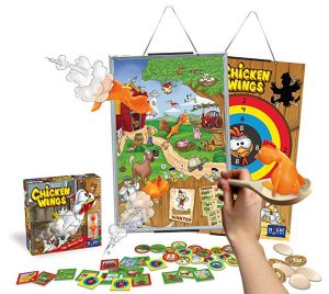 Qui n’a jamais rêvé de lancer un poulet sur une cible? Bon probablement personne, mais c’est ce que vous propose Chicken Wings. Il faut lancer un poulet tout mou, tout collant (comme les langues de Sticky Cameleon) avec une cuillère en bois! Oui oui, vous avez bien lu! Il aurait fallu lancer une balle ronde et ça aurait été ordinaire, mais c’est vraiment très drôle de voir le petit poulet (pas bien joli) « écrapouti » sur la cible!