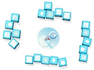 C’est un petit jeu qui est sorti un peu de nulle part, mais qui est bien attirant dans son emballage en forme de balle de neige! Chaque joueur a des dès qu’il peut lancer autant de fois qu’il le veut (tout le monde joue en même temps). Le but est de construire un bonhomme de neige (en ayant un dé avec les pieds, le corps et la tête) et le pousser avec notre doigt sur la ligne d’arrivée. Attention, car si un joueur à une face balle de neige sur son dé, il peut faire une pichenette et détruire votre bonhomme!