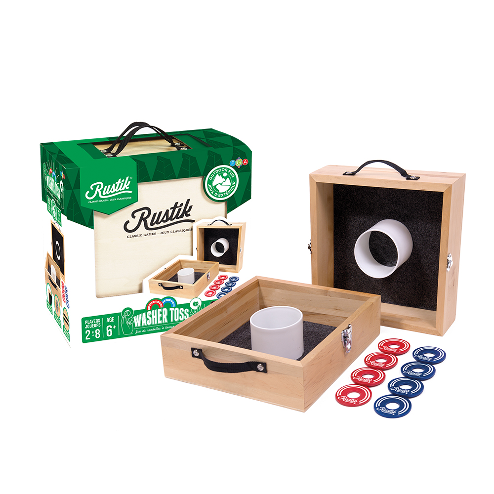 La gamme Rustik est un amalgame de jeux classiques d’Amérique-du Nord et d’ailleurs. Les divers jeux d’action ou de stratégie Rustik sont faciles à apprendre et se jouent en famille comme entre amis. Fabriqués à la main au Canada et fait de matériaux solides et de qualité, ces jeux sont fait pour durer.