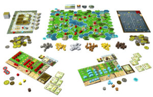 Dans la majorité des jeux de gestion de ressources il y a un marché qui sert principalement à se dépanner lorsque nous n’avons pas réussi à produire les ressources nécessaires ou pour faciliter un changement de stratégie. Dans Clans of Caledonia le marché est au centre du jeu avec la valeur des ressources qui fluctue avec l’offre et la demande, c’est donc très payant de vendre nos productions au bon moment! L’autre aspect du jeu qui m’a particulièrement séduit est le côté « conquête de territoire » qui incite à se construire de façon adjacente à nos voisins pour profiter d’un rabais au marché, mais surtout l’importance de bien séparer nos colonies avec un accès par les points d’eau pour aller chercher un maximum de points.