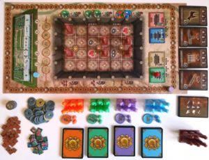 Il a passé sous le radar de plusieurs personnes (et moi le premier). C’est un ami qui me l’a fortement recommandé, alors je l’ai essayé et je l’ai tout de suite adoré! Quel bon jeu! La thématique de l’armée de terre cuite est imbriquée parfaitement dans le jeu. C’est fascinant de voir qu’avec seulement 4 actions possibles, il y a autant de manières de gagner des points. L’aspect de conquête de territoire un peu subtile pour aller chercher des points lorsque nous peignons nos statuts est une très belle touche au jeu.