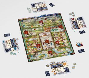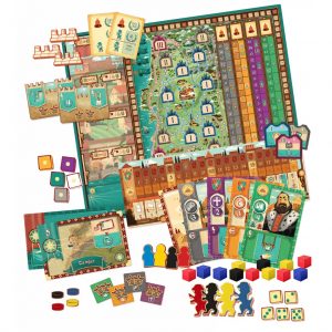 Il y a une grande montée de popularité des jeux de type Roll and Write (un peu comme une sorte de Yum réinventé). Cela dit, Coimbra me donne l’impression d’un « roll and write » par sa gestion des dés. Il faut choisir à tour de rôle des dés qui vont nous permettre dans un premier temps d’acheter des cartes selon la valeur des dés. Ensuite, on reprend nos mêmes dés et en fonction de leurs couleurs nous pouvons réaliser d’autres actions. Il faut donc savoir faire les bons compromis entre la valeur et la couleur des dés que nous choisissons. Il y a de multiples façons très intéressantes de générer des points. Ce jeu est tout simplement génial!