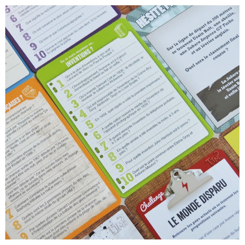 TTMC? Évalue tes connaissances de 1 à 10 et réponds aux questions! Alors tu te mets combien en … fuseaux horaires? Québec? personnages de dessins animés? Sois le premier à parcourir le plateau en répondant aux questions posées. Pour cela, tu devras auto-évaluer tes connaissances de 1 à 10 sur une multitude de sujets, pour tous les goûts et pour tous les âges. À chaque note correspond une question, plus ou moins complexe. Choisis le niveau de difficulté de ta question et avance du nombre de cases correspondant, en cas de bonne réponse. Un jeu de culture générale, idéal pour agrémenter les soirées entre amis ou en famille. Simple, efficace, et amusant!