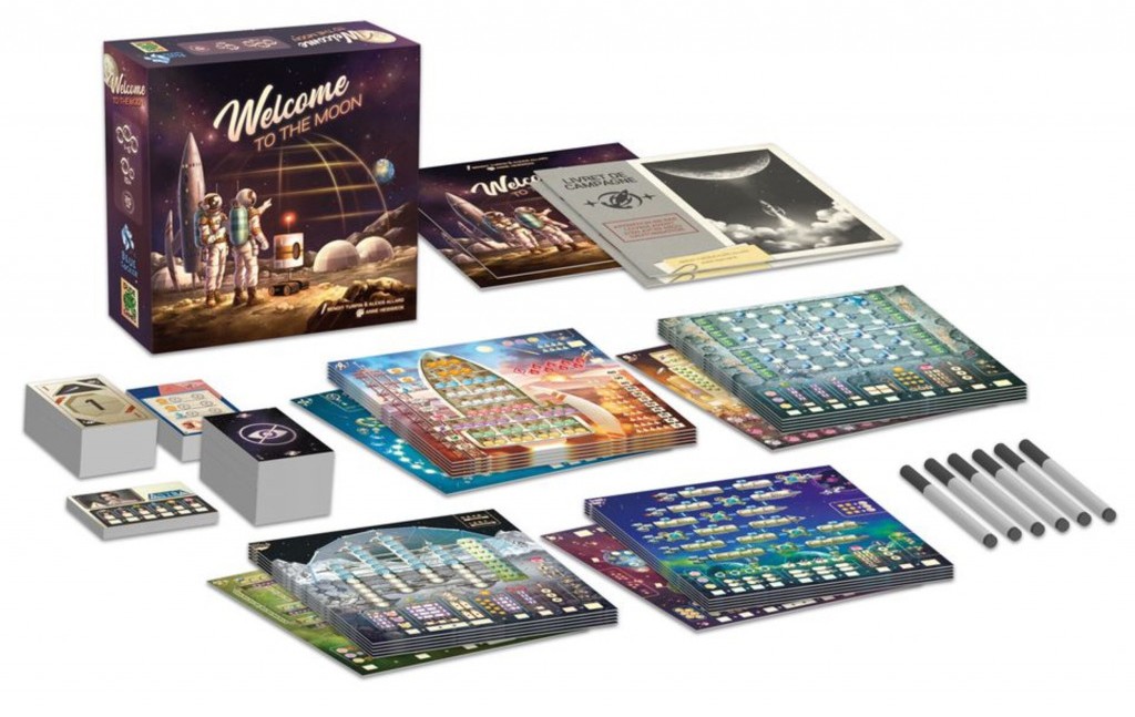 Il s’agira de sauver l’humanité en colonisant l’espace ! Welcome to the Moon est constitué de 8 aventures différentes qui forment une histoire complète avec une difficulté croissante. Vous pouvez jouer ces 8 aventures indépendamment, ou successivement pour découvrir votre histoire. Nous avons gardé le cœur mécanique de Welcome :1 choix parmi 3 paires de cartes numéros actions, inscrire son numéro dans des cases regroupées dans des zones ou les numéros doivent être croissant. Welcome to the Moon permet de proposer des changements mécaniques forts et très différents qui permettent de renouveler l’expérience au cours des huit aventures composant la campagne.