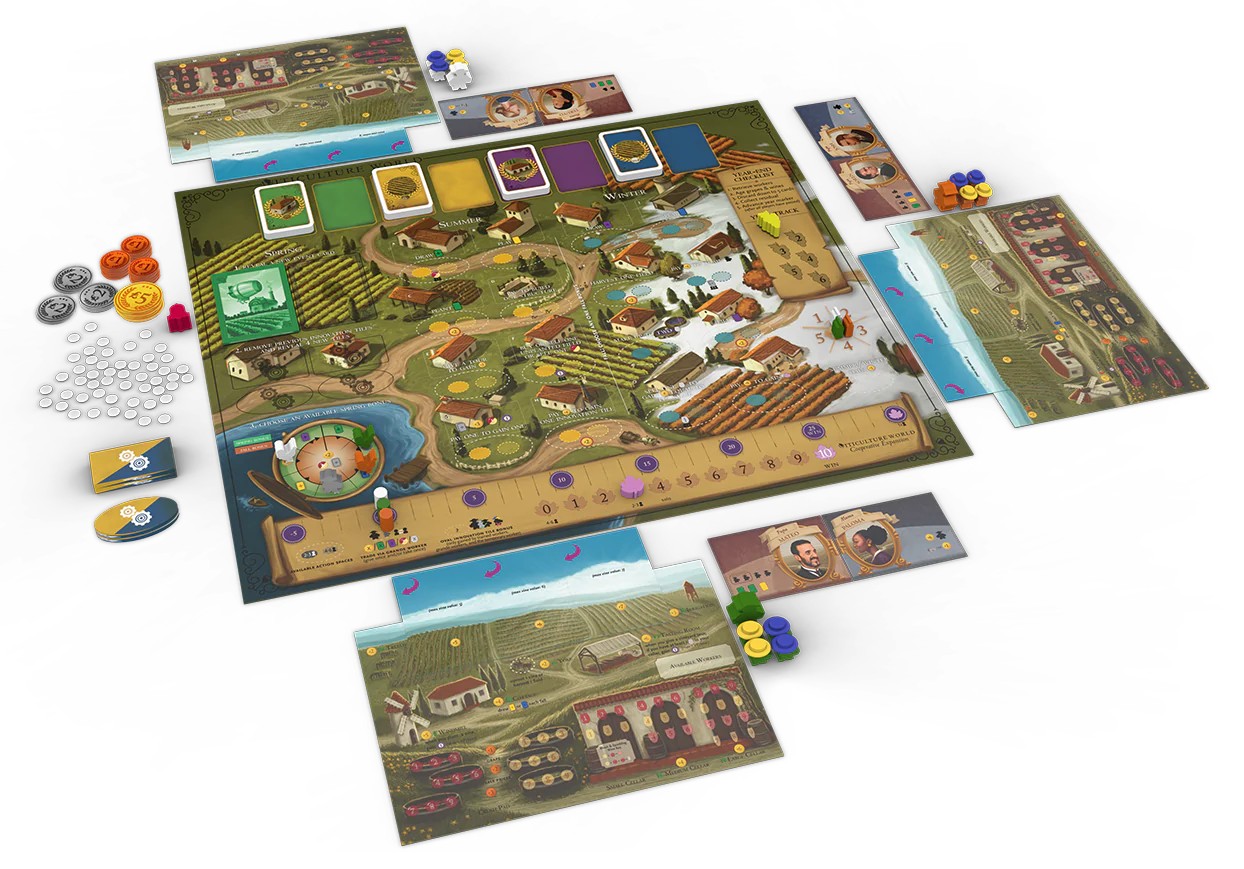En utilisant un nouveau plateau de jeu, des tuiles, des jetons et des cartes d’événement combinés aux tapis de vigne et aux cartes de jeu d’origine, vous avez 6 ans pour remplir les deux conditions nécessaires à la victoire dans la région sélectionnée : (1) Chaque joueur doit atteindre 25 points de victoire et (2) le jeton d’influence partagée doit atteindre la fin de la piste d’influence. Si vous aimez le style de coopération et l’asymétrie des scénarios dans Spirit Island et Orleans : Invasion, nous pensons que vous apprécierez Viticulture World.