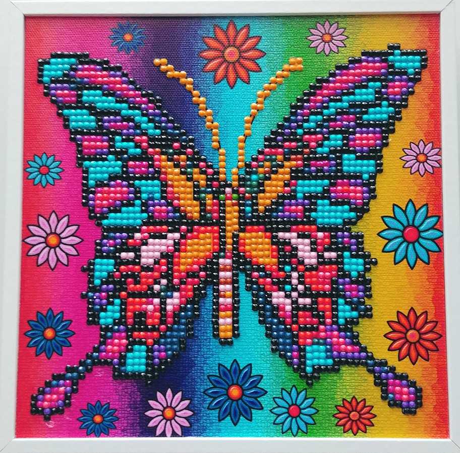 Broderie de diamant en cadre. Diamants ronds. Dessin partiel. Taille du cadre 19 cm x 19 cm