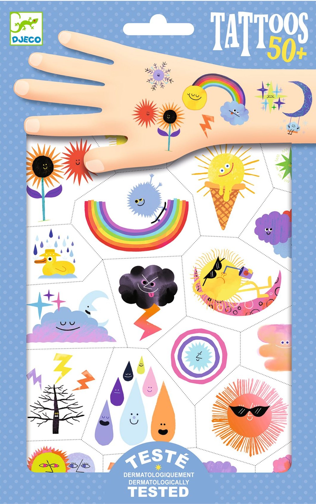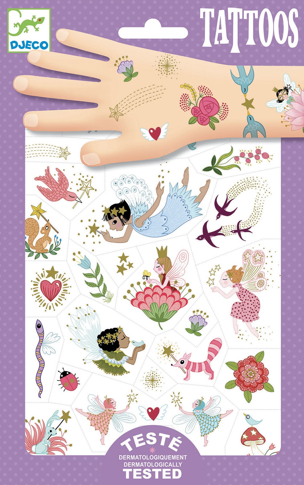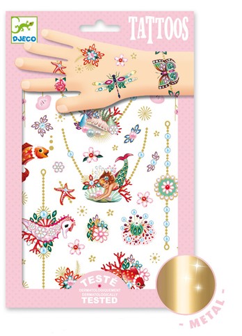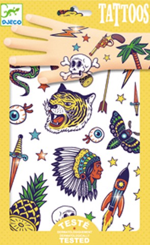 Tatoos aux illustrations variées adaptées à tous les âges. Contient 2 feuilles de différents tatouages.