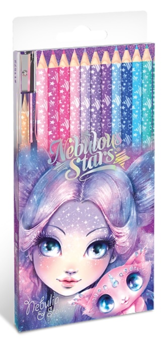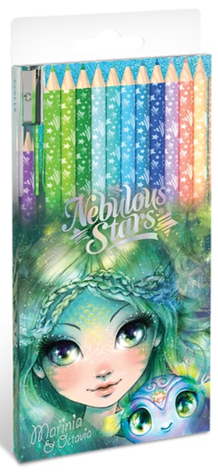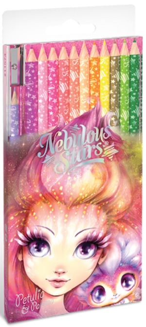 Un assortiment de 12 crayons de couleur en bois à l’image du monde coloré des Nebulous Stars. Chacun correspond aux quatre environnements différents des Nebulous Stars.