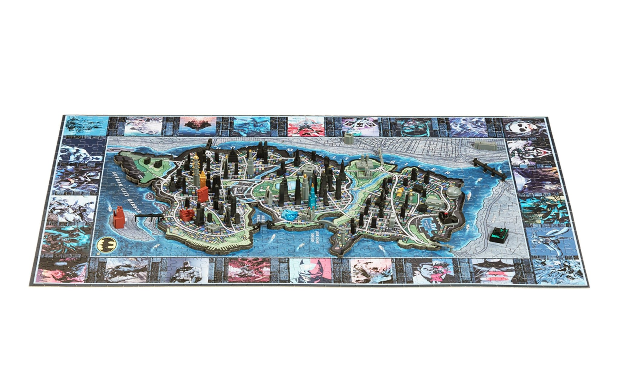 Ce puzzle guidera les joueurs à travers l’assemblage de la carte officielle DC de Gotham City dans un design multicouche breveté. La première couche est un puzzle de 685 pièces qui vous apprendra tout sur les différents endroits et régions de Gotham City. La deuxième couche est un puzzle artistique de 49 pièces qui reproduit le paysage nocturne basé sur la carte officielle DC Comics de Gotham City. La troisième couche, vous ajoutez des modèles de répliques miniatures 3D dans le puzzle, qui incluent des bâtiments et des structures célèbres tels que Wayne Manor, GCPD Gotham City Police Department, Ace Chemical Plant, Wayne Tower, Iceberg Casino & Lounge, et bien d’autres! Chaque modèle est une mini-sculpture très détaillée de l’emplacement réel.