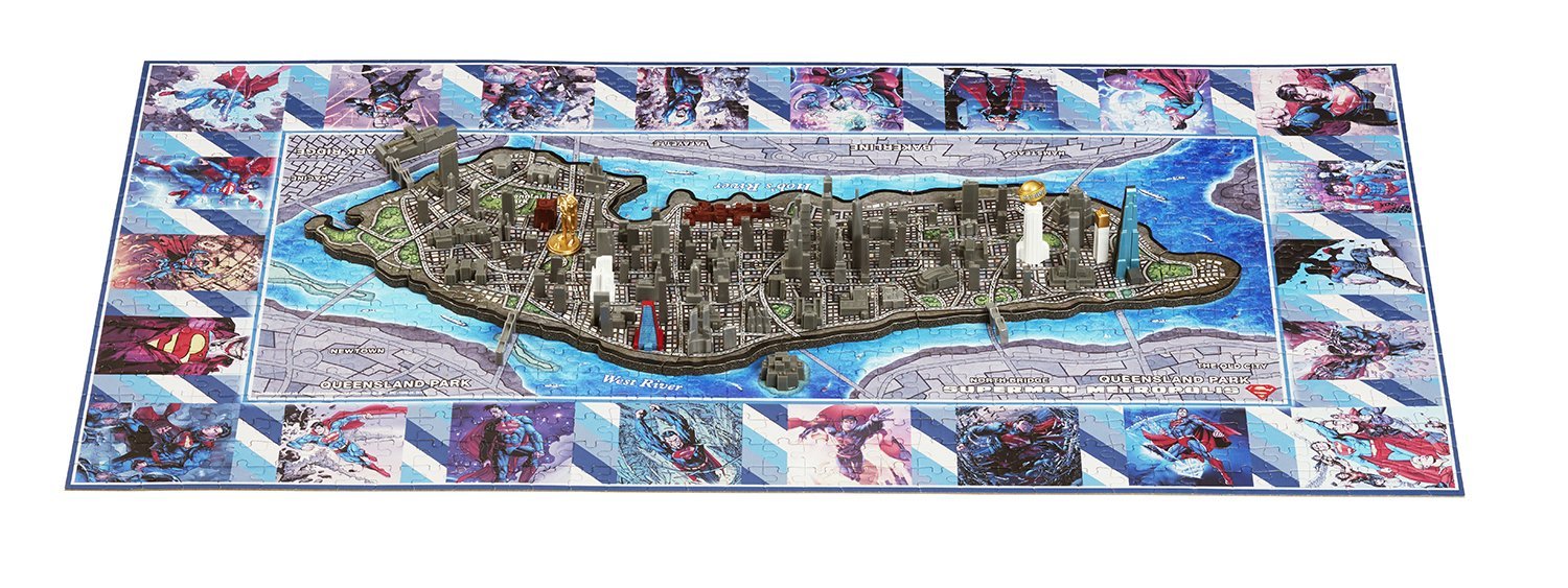 Ce puzzle guidera les joueurs à travers l’assemblage de la carte officielle DC de Metropolis dans un design multicouche breveté. La première couche est un puzzle de 701 pièces et plus qui vous apprendra tout sur les différents endroits et régions de Metropolis. La deuxième couche est un puzzle artistique de plus de 35 pièces qui reproduit le paysage plus détaillé. La troisième couche, vous ajoutez des modèles de répliques miniatures 3D dans le puzzle, qui incluent des bâtiments et des structures célèbres tels que Daily Planet, Ace O Clubs, Metropolitan Museum of Art, Lexcorp Towers, STAR Labs, Suicide Slums et bien d’autres! Chaque modèle est une mini-sculpture très détaillée de l’emplacement réel.