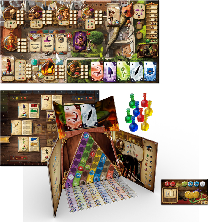 Alchimistes est un jeu de stratégie, de prise de risque et de déduction. Allez-vous prendre le temps de pousser vos expérimentations et vérifier vos théories ou allez-vous vous dépêcher de publier pour gagner rapidement en réputation ? Allez-vous payer pour confirmer la dernière théorie sur les crapauds, ou conserver votre argent pour acheter un artefact ? Est-il vraiment judicieux de vendre une potion à ce barbare lourdement armé alors que vous n’êtes pas tout à fait certain de ses effets ? Faites les bons choix et prouvez à tous que vous êtes le plus grand alchimiste du monde.