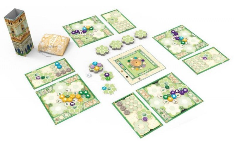 Le Jardin de la Reine est le plus gros jeu dans la famille d’Azul avec plus de composantes, un plus gros plateau de joueur et de nouvelles tuiles hexagonales