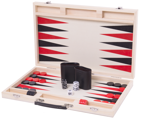 En déplaçant vos pions de l’autre côté du plateau en fonction du résultat du lancer de deux dés, soyez le premier à retirer tous vos pions du plateau de jeu. La planche se replie dans sa propre mallette de transport.