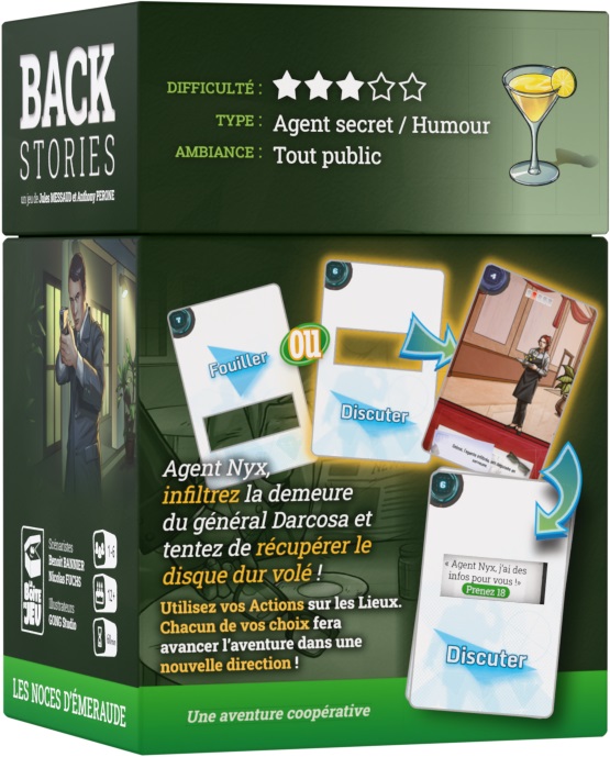 Dans Les Noces d’Émeraude, vous incarnez l’agent Nyx. Au cours d’une mission de haute voltige, tentez de déjouer les plans du sinistre général Darcosa, en lui subtilisant le disque dur Top Secret qu’il a en sa possession.