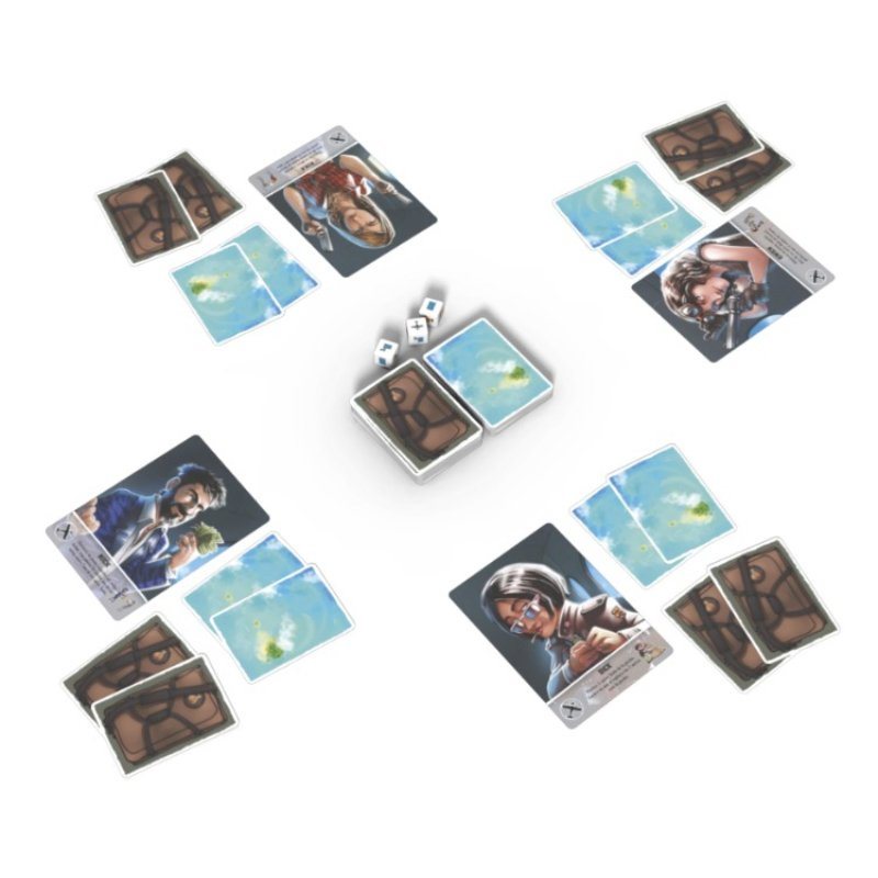 Chaque joueur reçoit une fiche de personnage au hasard (chacune avec un pouvoir spécial différent), ainsi qu’une carte de départ, une carte d’action et deux cartes d’argent. Parmi ces cartes de départ se trouvent 2 à 5 parachutes (en fonction du nombre de joueurs), et vous aurez besoin de l’un d’entre eux pour survivre à la fin de la partie !