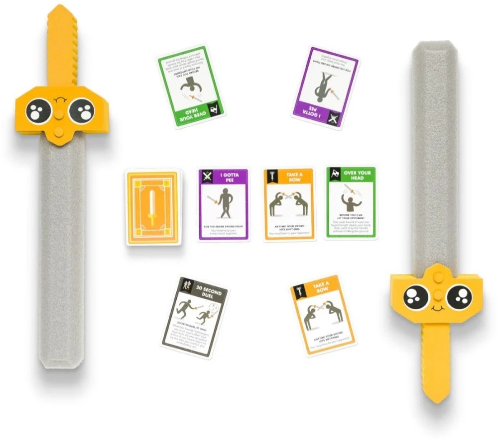 Baston à la Carte est facile à apprendre, rapide à jouer et hilarant à regarder. Apportez-le à vos événements en plein air, à vos soirées de jeux en famille ou à tout autre endroit où vous devez régler des différends comme des adultes (des adultes avec des épées !).