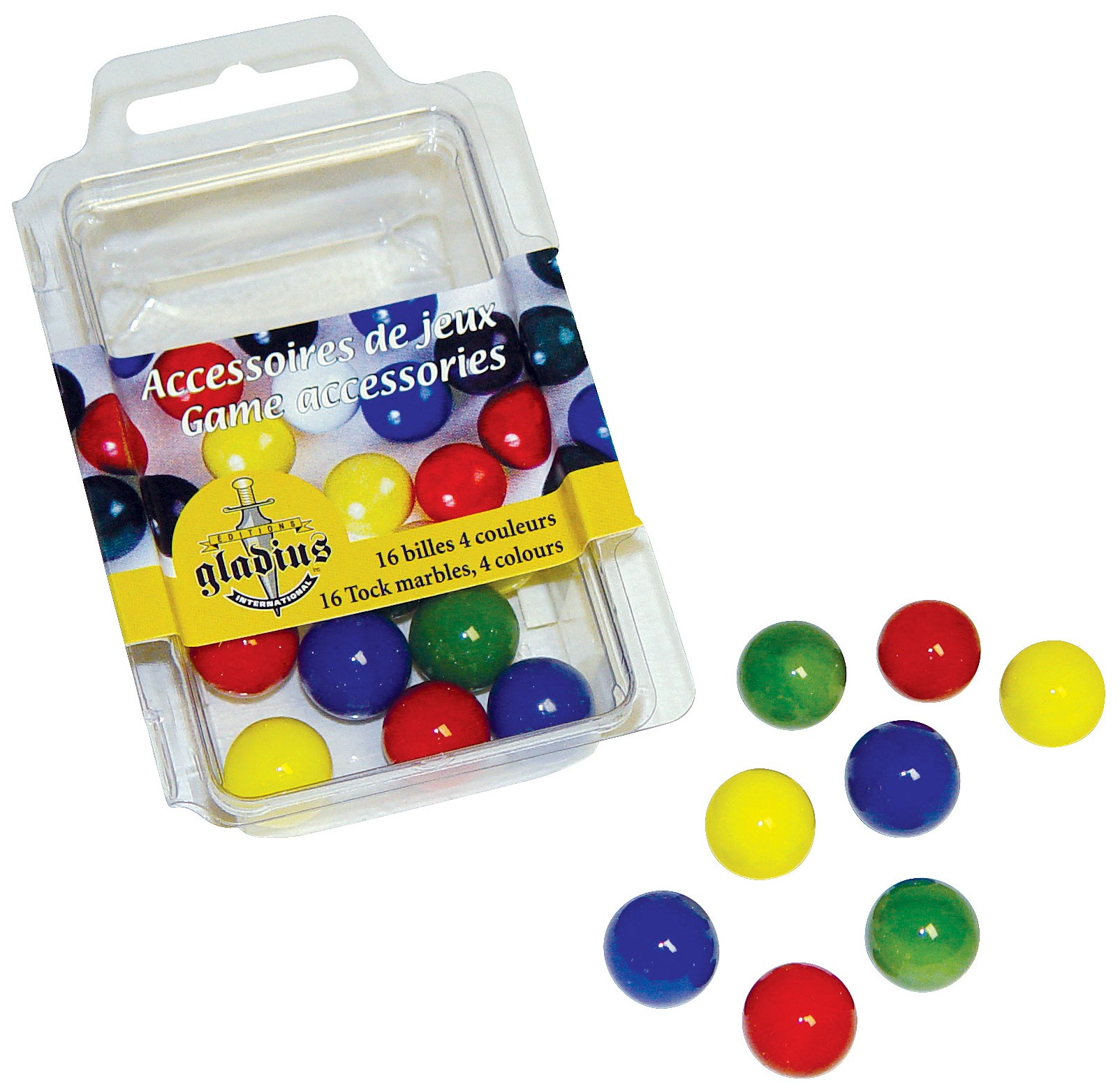 16 billes – 4 couleurs différentes: bleue, rouge, vert et jaune.