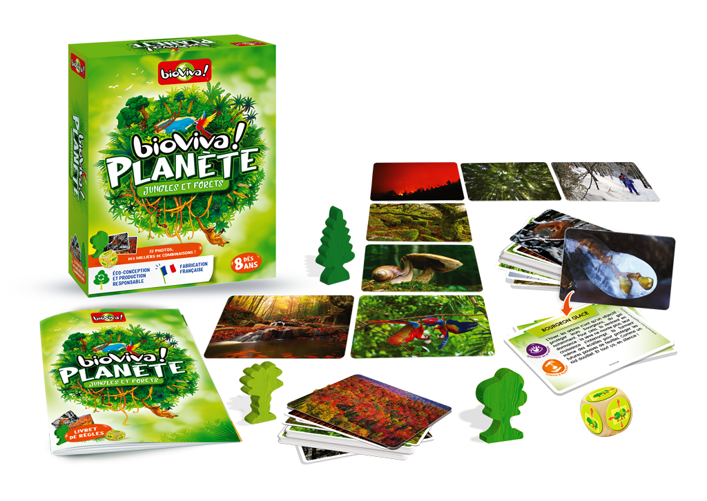 Au travers de photographies étonnantes ou insolites, Bioviva Planète Jungles et Forêts fait la part belle aux richesses de notre planète. Placez vos cartes habilement, en faisant correspondre leurs caractéristiques (indiquées par les pictogrammes) , pour marquer le maximum de points. Un jeu pour s’émerveiller, sans modération.