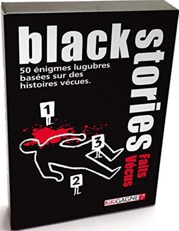 50 Black Stories, 31crimes, 49 cadavres, 11 meurtriers, 12 suicides et un repas fatal. Voilà les ingrédients des 50 histoires-énigmes que l’on vous propose. En voici un exemple :