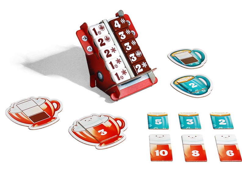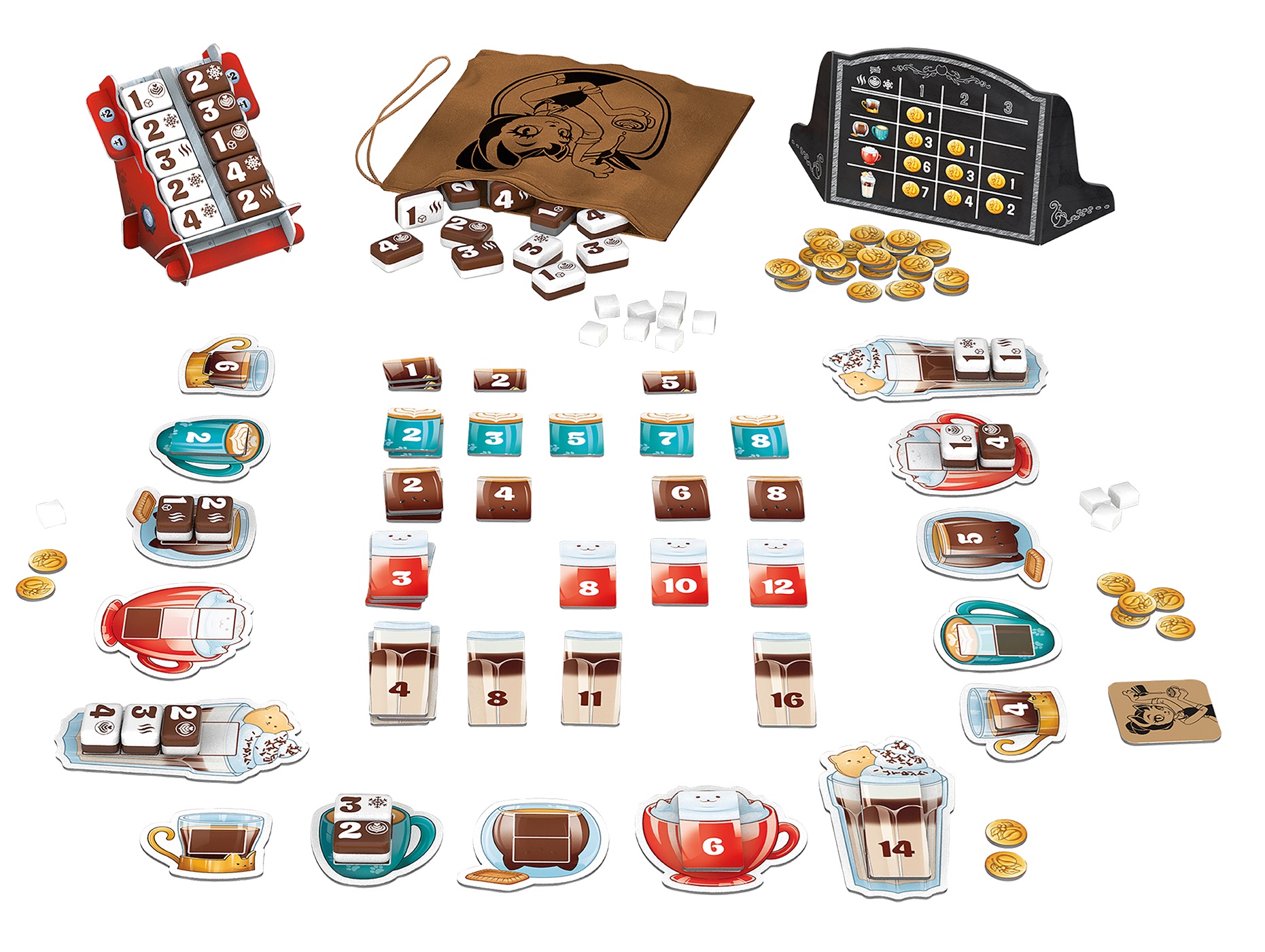 À votre tour, vous aurez le choix entre acheter une tuile café ou une tuile lait, revendre vos créations pour gagner de l’argent et des points de victoire ou passer votre tour pour gagner un peu d’argent. Cela peut paraitre simple mais il faudra surveiller en permanence l’avancée de vos adversaires. En effet, la fin de partie pourrait arriver bien plus vite que prévue. Café del Gatto est un jeu familial avec un système d’achat original et une interaction forte.