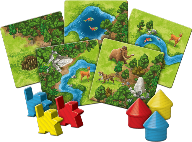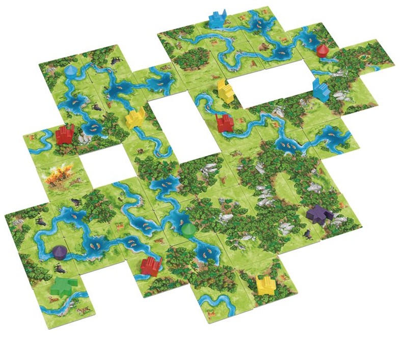 Au lieu des routes, villes et champs habituels, Carcassonne : Chasseurs et Cueilleurs vous présente des forêts, des rivières, des lacs et des prés.