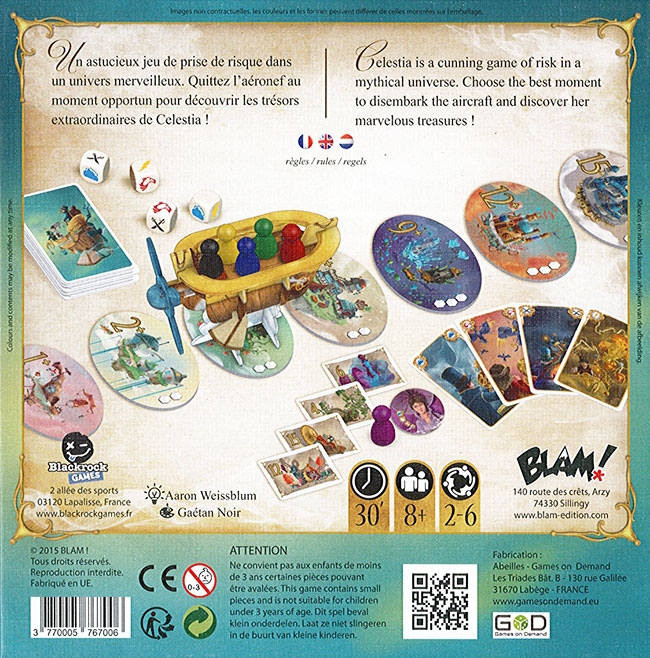 Vous embarquez dans un aéronef avec une équipe d’aventuriers pour effectuer de nombreux voyages dans les cités de Celestia et récupérer leurs merveilleux trésors. Votre périple ne se fera pas sans danger mais vous tenterez de devenir l’aventurier le plus riche en collectionnant les trésors les plus précieux !
