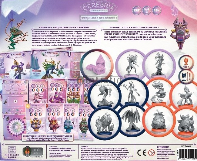 Cette extension inclut également 10 GRANDES FIGURINES ESPRIT, FINEMENT SCULPTÉES, venant se substituer aux figurines cartonnées du jeu de base, vous plongeant ainsi pleinement dans l’expérience Cerebria !