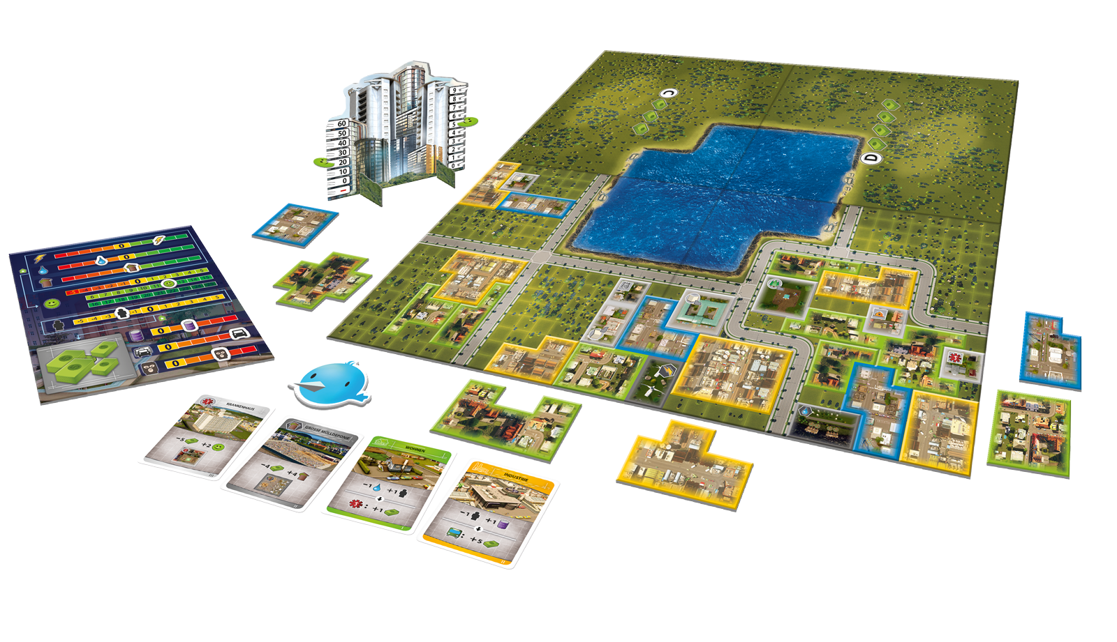 Commencez l’aventure sur un terrain vierge, et faites évoluer votre Cité en fonction des attentes des habitants! Chaque joueur dispose de cartes lui permettant de contribuer à la construction en mettant en place de nouveaux bâtiments. Chaque ajout aura bien évidemment un effet sur l’ensemble de la ville: certains augmentent le besoin de ramassage des ordures, réduisent la criminalité, augmentent le trafic ou octroient des bonus.