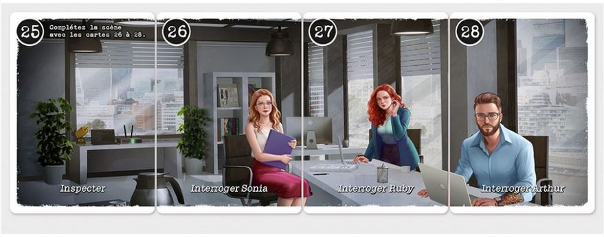 Et pour enquêter, rien de plus simple. Prenez une carte pour la regarder de plus près. Un élément vous intrigue ? Retournez la carte et découvrez ce qu’est ce petit papier sur la table de chevet.