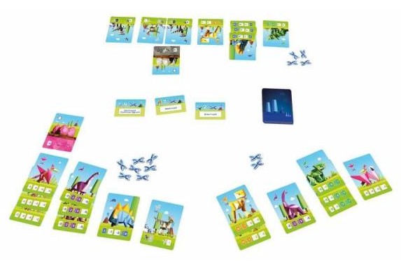 Parviendrez-vous à empêcher les Dinos de disparaître ? Il vous faudra alors préserver un équilibre fragile entre toutes leurs espèces ! Choisissez judicieusement comment traiter les cartes Mains de Dinosaure qui vous sont remises : ajoutez les plus avantageuses à votre collection, et débarrassez-vous intelligemment des autres en les offrant au joueur suivant. Construisez les meilleures collections pendant 2 tours pour gagner la partie !