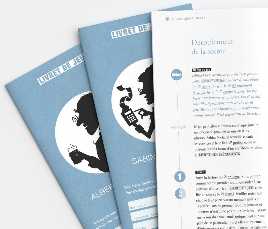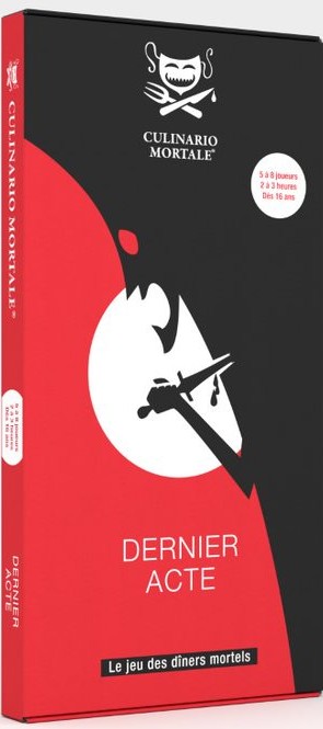 Culinario Mortale est une gamme de diner enquête. Le temps d’un repas, les joueurs incarneront chacun un personnage. Un drame vient d’avoir lieu, les joueurs devront mener l’enquête pour trouver le coupable qui se trouve parmi eux. Le rythme est soutenu, l’intrigue est palpitante, pour une soirée pleine de rebondissements !
