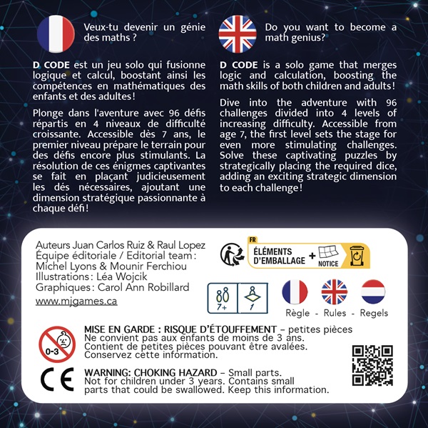 D Code est un jeu solo qui fusionne logique et calcul, boostant ainsi les compétences en mathématiques des enfants et des adultes!