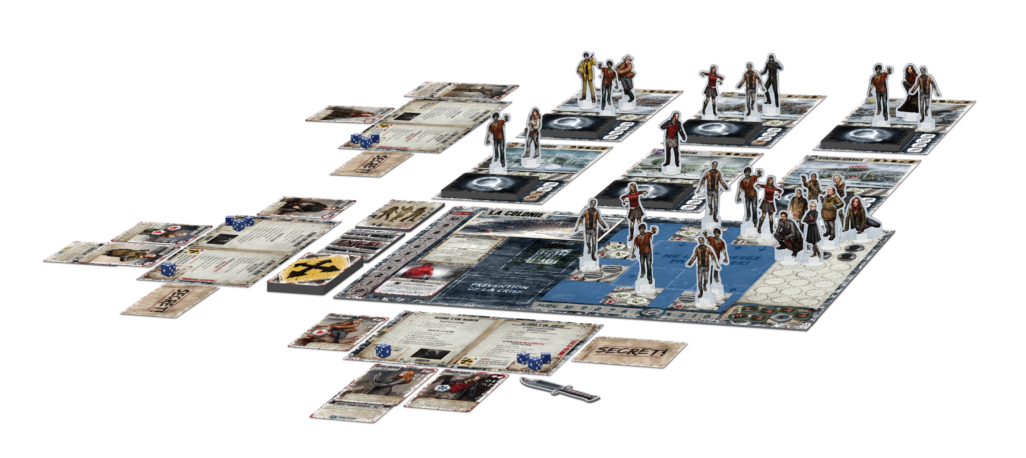 Dead of Winter est un jeu de société centré sur l’histoire qui vous met ensemble avec jusqu’à quatre autres joueurs dans les suites torturées de l’apocalypse zombie. Les morts poussent de tous côtés, mais la simple survie ne suffit pas. Vous devrez vous aventurer au-delà des limites de la colonie pour rassembler des fournitures vitales, résoudre des crises, maintenir le moral et atteindre votre propre objectif secret. Que vous envisagiez de trahir la colonie ou de la mettre en sécurité, vous ne pouvez faire confiance à personne. Tout le monde a un secret…