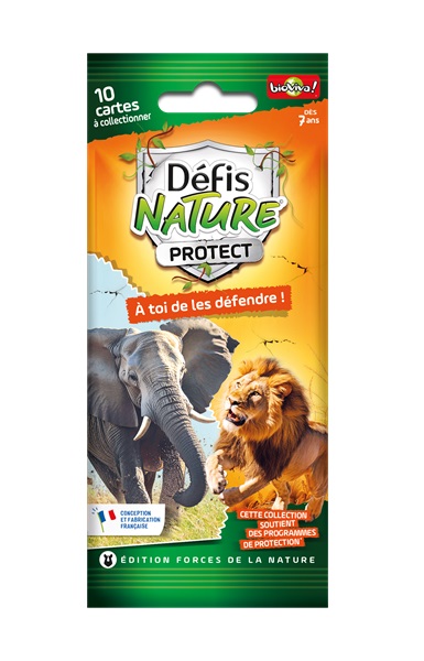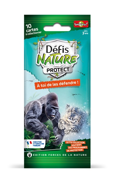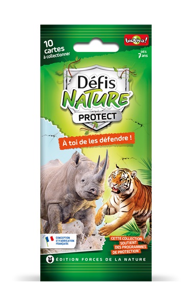 La gamme Défis Nature Protect: Le 1er jeu de cartes à collectionner qui sensibilise et participe à la protection des animaux fabriqué en France.