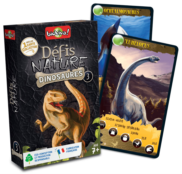 Pariez sur les points forts des dinosaures. Le joueur qui, au final, présente la plus forte caractéristique remporte les cartes des autres joueurs.