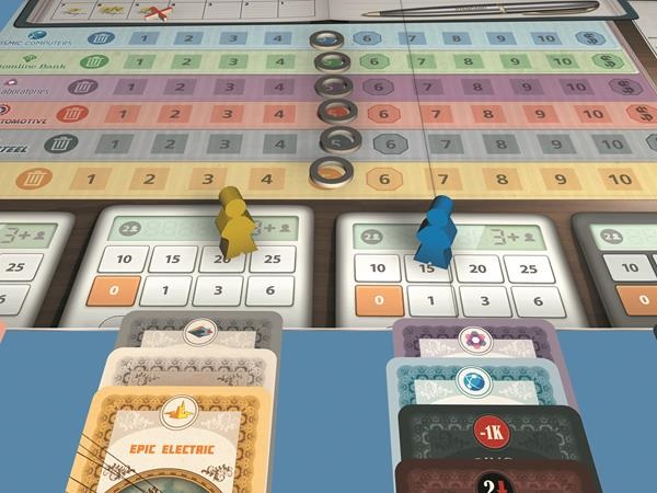 Délits d’initiés (Stockpile) est un jeu de société économique qui combine la stratégie traditionnelle de détention d’actions (acheter à bas prix, vendre à prix élevé) avec plusieurs mécanismes supplémentaires pour créer une expérience rapide, engageante et interactive.