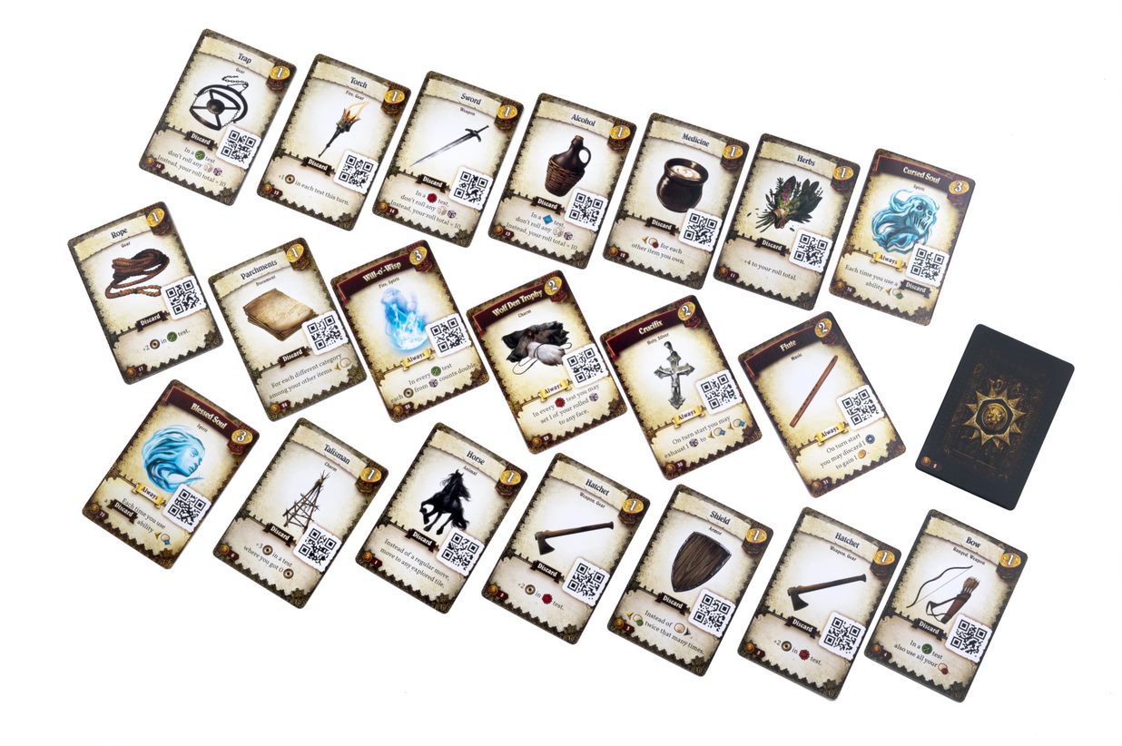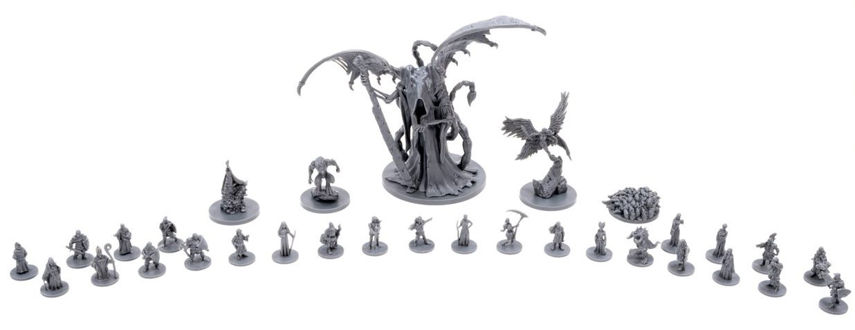 Contenu: 67 tuiles Cartes, 3 Plateaux Joueur, 15 cartes Destinée, 150 cartes Objet, 30 figurines Personnage, 1 figurine immense de Boss, 15 dés custom, 36 jetons marqueurs de Compétences, 20 jetons de Commerce, 20 jetons Pièce, 20 jetons Expérience, 26 marqueurs Point d’intérêt, Livret de règles.