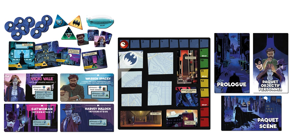 Chaque épisode vous met au défi : vous devrez travailler avec les autres joueurs tout en essayant d’accomplir les objectifs personnels de votre propre personnage. Vous arpenterez tout Gotham City : des sinistres bas-fonds aux bureaux animés du Gotham City Gazette. Prenez tout le temps qu’il vous faudra, mais n’oubliez pas que Gotham City abrite le plus grand détective au monde…
