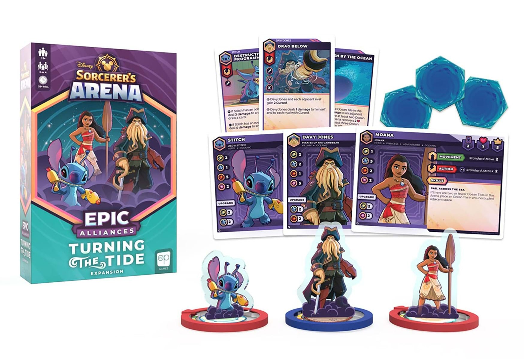 Amenez vos compétences de combat dans Disney Sorcerer’s Arena : Epic Alliances à de nouveaux niveaux avec le pack d’extension Contre Vents et Marées ! Davy Jones, Moana et Stitch apportent de nouvelles attaques et capacités fidèles à leurs personnages qui changeront le cours des batailles déjà épiques de l’arène. Disney Sorcerer’s Arena: Epic Alliances est le jeu de table PvP ultime pour les fans et les joueurs de Disney et Pixar où les joueurs peuvent créer des équipes à partir de héros et de méchants Disney et Pixar et s’affronter dans un jeu d’arène de combat extensible et évolutif.